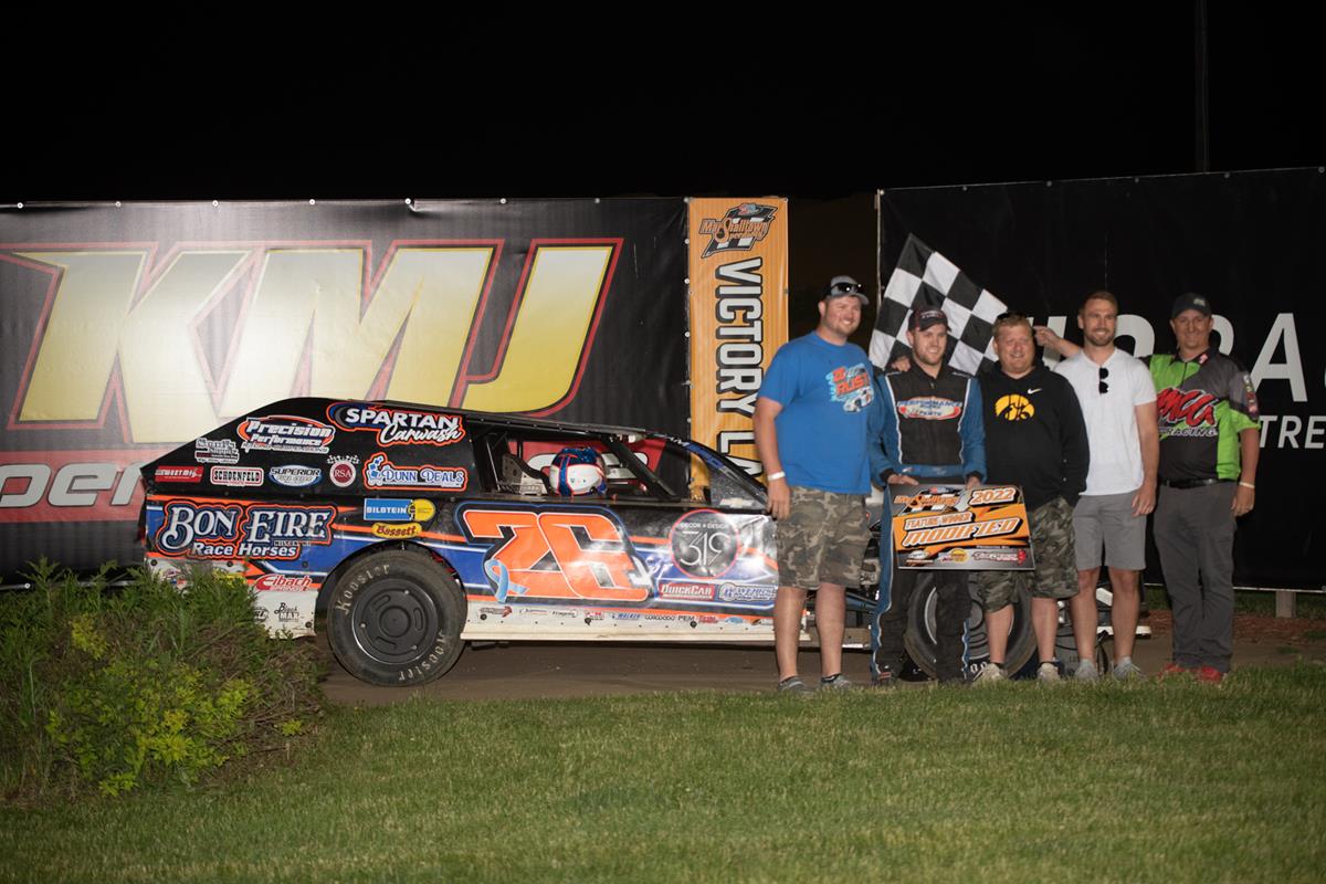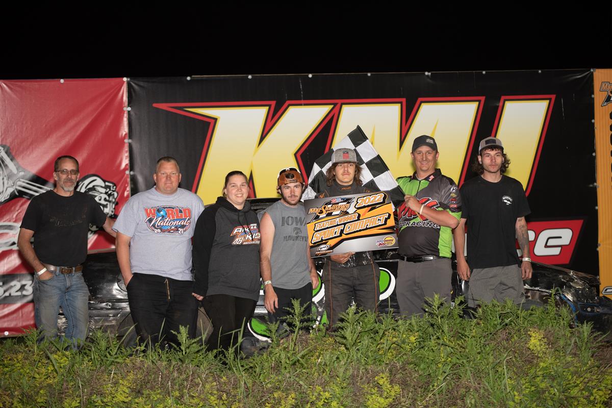 It was Kwik Star Night at the Races at the Marshalltown Speedway on Friday night and two drivers came away with their first win at the High Banks this year....Austin Kaplan in the IMCA Sunoco Stock Cars, and Blake Driscol in the IMCA Mach-1 Sport Compacts. Joel Rust repeated an earlier win in the IMCA Friesen Performance Modifieds, as did Randy Bryan in the IMCA STARS Mod Lites, and John Watson went back to back in the IMCA Sunoco Hobby Stocks. Kyle Olson scored his third feature win of the year in the IMCA Friesen Performance Northern SportMod division.