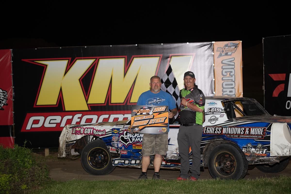 Joel Huggins jumped to the lead in the STARS Mod Lite 15 lap feature and was sailing along in good shape as he led the field, but Randy Bryan was soon reeling him in. Bryan swung to the topside, and made the pass out of corner four as lap nine went into the books. Bryan kept that lead the remaining distance to the flying checkers and the win. Huggins didn't go away though, and finished a close second. Trailing a distant third was Josh May, who made his first appearance at the track this year. Cory Sonner came from tenth starting spot, to finish fourth, and Gary DeWitt, Mesa, Arizona made the haul up to Iowa to try his hand on the Iowa dirt, and finished fifth. This was Bryan's second win at Marshalltown this season. The race went flag to flag.