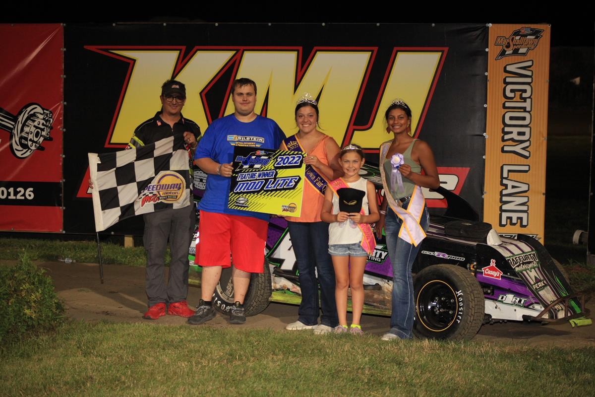 Dallon Murty returned to Victory Lane in the Friesen Performance IMCA Modifieds, and Michael Jeannette got his second win in the IMCA Sunoco Stock Cars. Travis Peterson saw his first winner's circle visit in the Friesen Performance IMCA Northern SportMods, and Eric Knutson repeated in the IMCA Sunoco Hobby Stocks. Dillon Raffurty took first in the STARS Mod Lites, and Kolby Sabin won the MACH-1 IMCA Sport Compact feature.