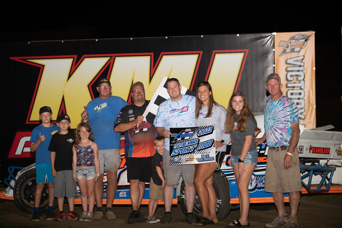 Taylor Bass, who calls Ackley, Iowa home, held down the top spot in the 20 lap feature event for the IMCA Northern SportMods through lap eleven. That's when Tony Olson saw his chance after running down the leader, and flew into the lead on lap twelve. He never relinquished that top spot the rest of the way to the checkers and the win. He had to hold off cousin Kyle Olson who finished second. Bass held the third spot, Travis Peterson was fourth, and Mason Day, Farmersville, Texas was fifth. This was Olson's second victory of the year.