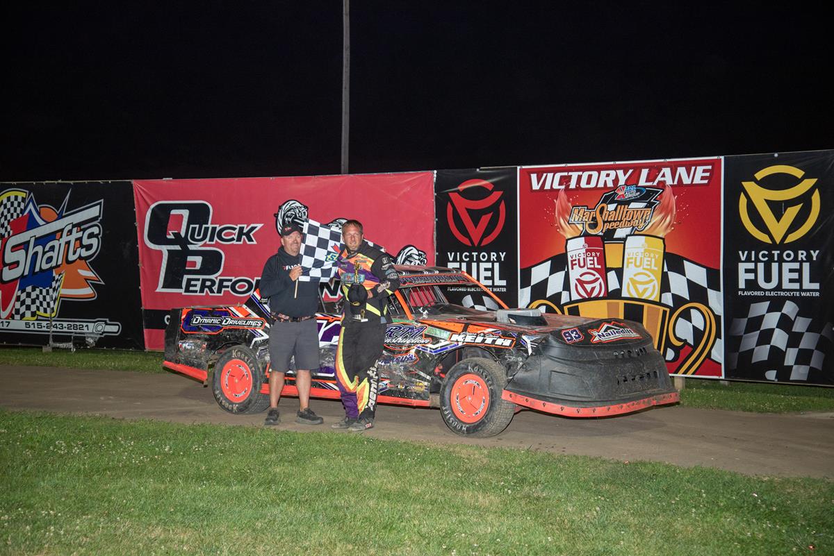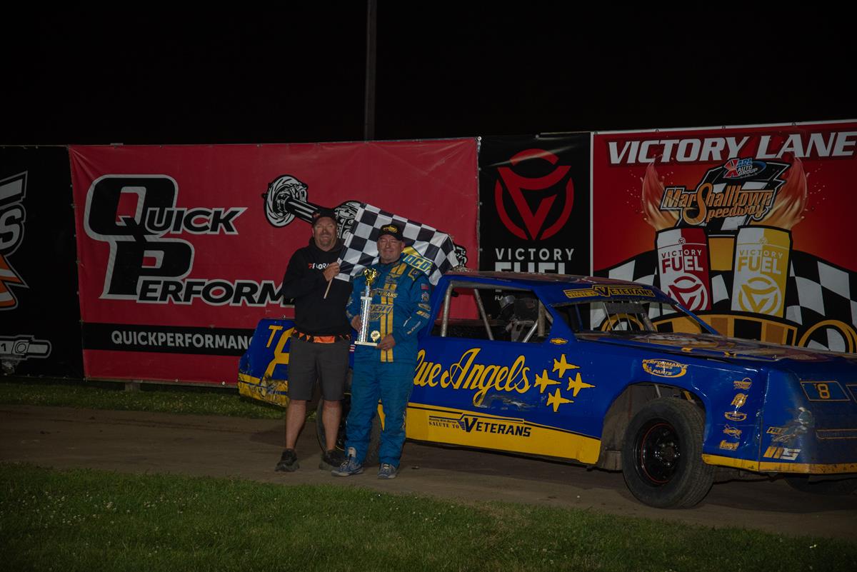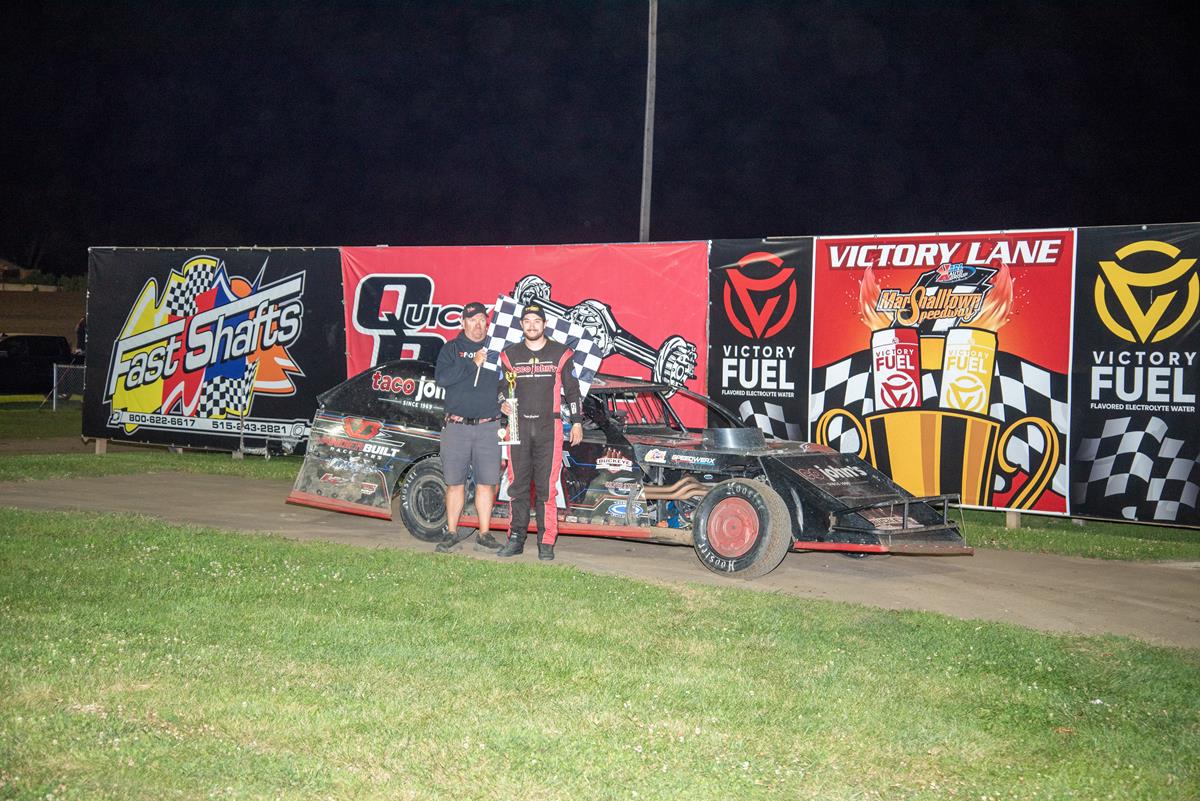 It was a beautiful night for racing at the Marshalltown Speedway on Friday night where it was VESSCO/BHE/RBF Electric night at the track. Those sponsors added extra money to the SportMod, Hobby Stock and Mod Lite classes, all paying $1000 to win. Visiting driver in the IMCA Friesen Performance Northern SportMod class, Tyler Inman took the checkers in that division. It was another visitor on the night, Brandon Nielsen, taking the IMCA Sunoco Hobby Stock win, and Jon Padilla was back in victory lane in the IMCA Stealth STARS Mod Lites. Tripp Gaylord matched his opening night win when he took the checkers in the IMCA Friesen Performance Modifieds, and Michael Gardner won the IMCA Mach-1 Sport Compact feature.