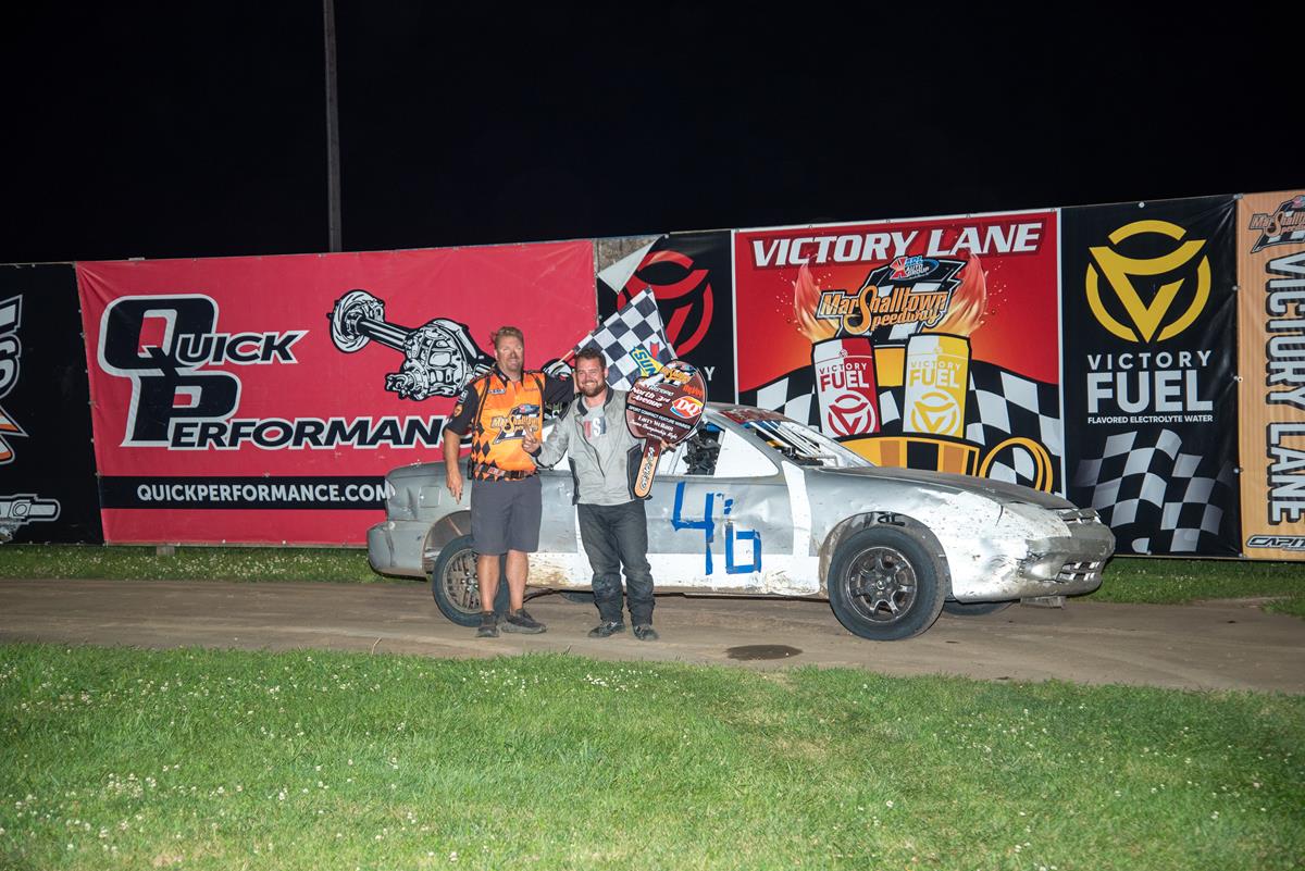 Mike Pershing and Michael Mann, both from Colchester, Illinois were the lucky front row starters due to the field being inverted for the start. Mann led lap one, Pershing took over on lap two, and Colona, Illinois's Jason Masengarb took over on lap three. Masengarb pulled his lead to a full straight away when a yellow flew on lap sixteen. By this time Jon Padilla was up to second place and battling with Josh May who was running third. When the race returned to action, Masengarb maintained his lead, but briefly lost it to Padilla on lap eighteen, but then came right back to reclaim the top spot. He never gave it up the remaining distance to the finish, and sealed the win, his third of the season. Padilla started twentieth and had to settle for second, nineteenth place starter Josh May came home in third place, fourth went to Colona, Illinois racer Mike Morrow, and twelfth place starter Cory Sonner was fifth.